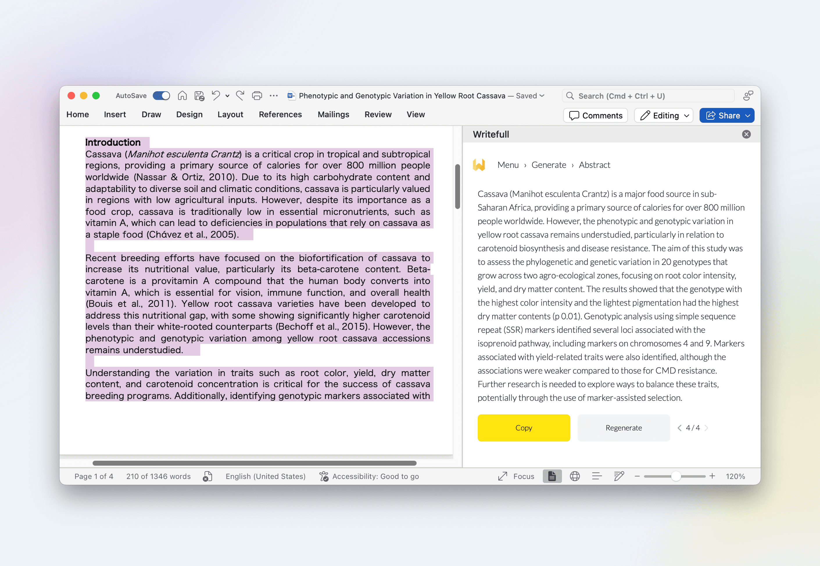 No more stress over abstracts! Writefull creates one automatically from your text.