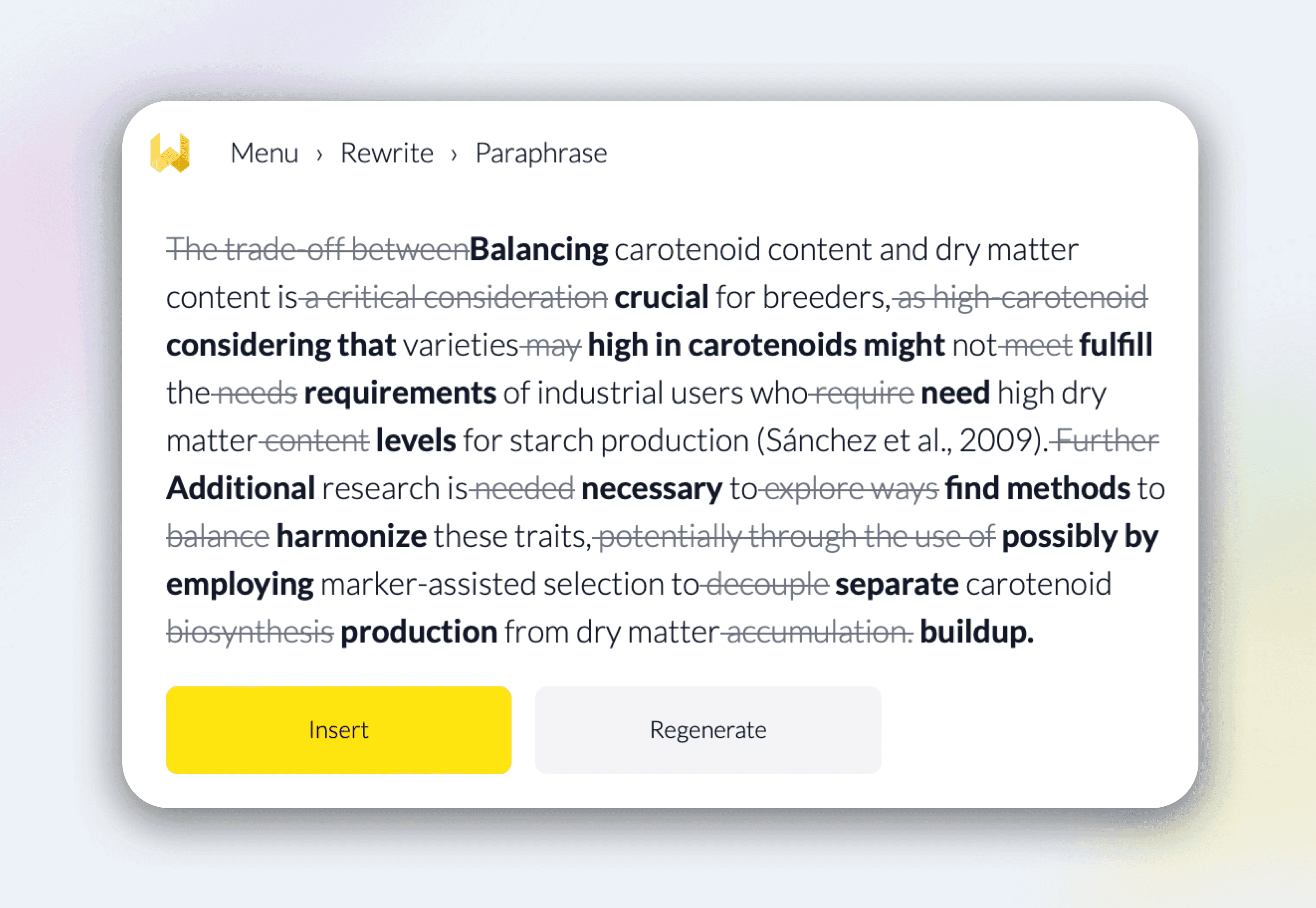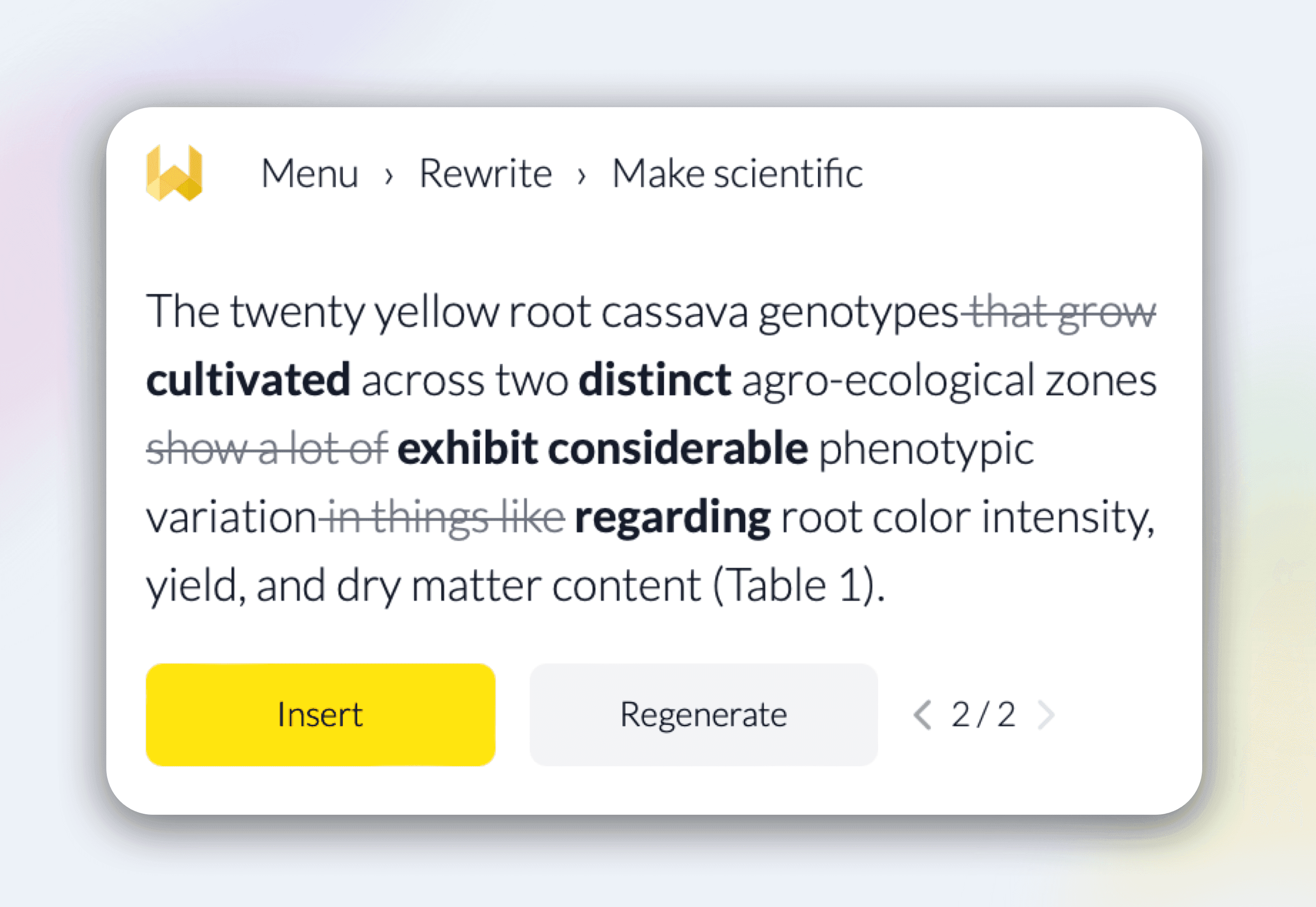 Find synonyms for any word or phrase that seamlessly fit your sentence and are suitable for academic writing.